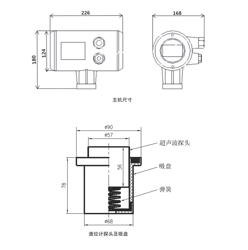 超聲波傳感器(探頭)在容器外部利用磁力吸附式,無需對被測容器開孔,就可以實(shí)現(xiàn)液位測控。