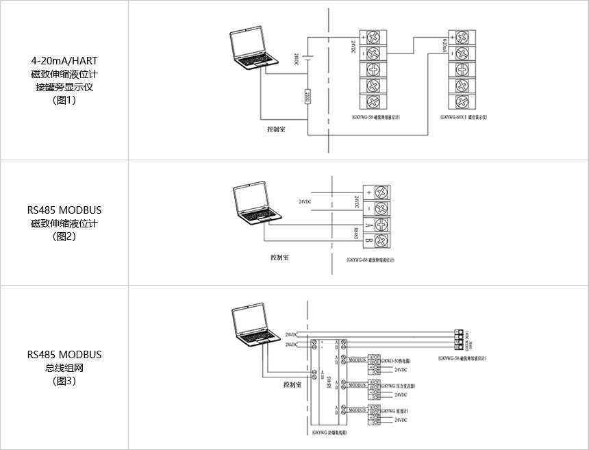 輸出信號4-20mA/HART、RS485 MODBUS可選,可現場指示和遠程進入PLC或DCS系統
